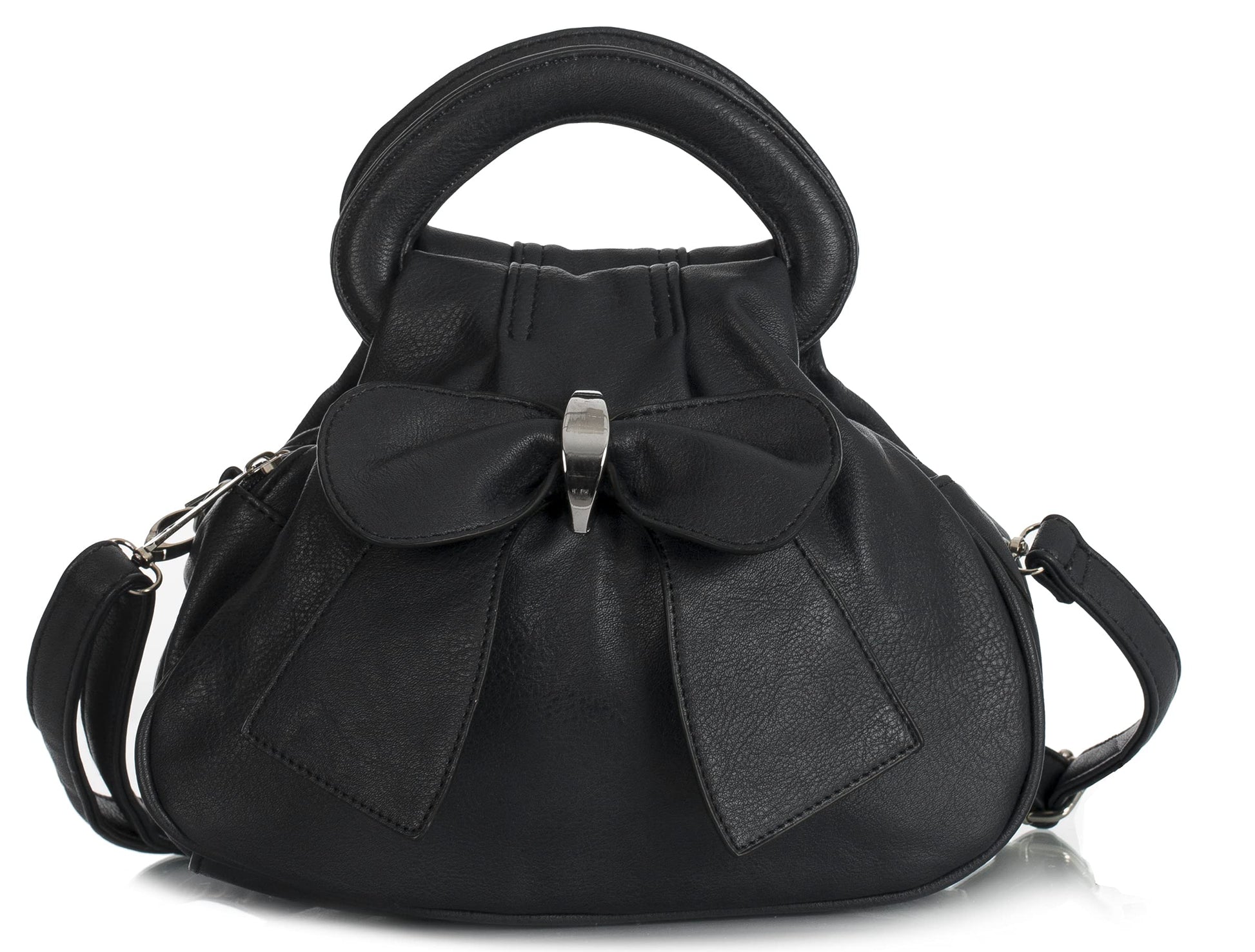 Rea - Small Vegan Leather Bow Detail Shoulder Handbag with Multiple Zip Pockets